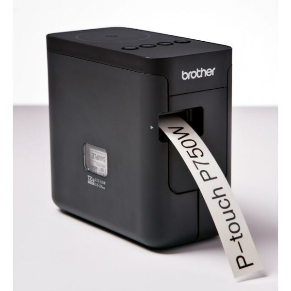 a Macintosh®. Štyri spôsoby napájania – AA alkalické batérie, AA NiMH batérie, Li-io dobíjateľné batérie alebo AC adaptér. P-touch P750W používa kazetové pásky TZe v šírkach 6, 9, 12, 18 a 24 mm. Súčasťou balenia je 24 mm páska (4 m), AC adaptér a užívateľská príručka.