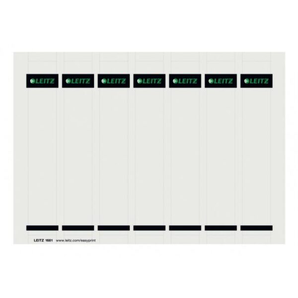 Náhradné zasúvacie papierové chrbtové štítky pre šírku chrbta 5,2 cm vhodné na potlač do laserových a atramentových tlačiarní a kopíriek cez jednoduchý internetový nástroj `EASYPRINT` na stránke www.esselte.com/easyprint. V balení 25 hárkov (á 7 štítkov na liste = 175 ks štítkov) s predperforovanými štítkami.