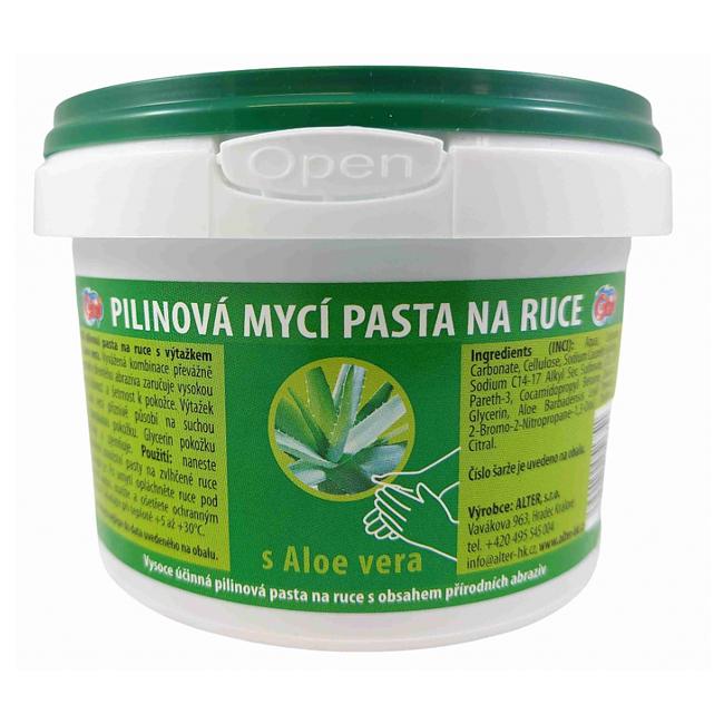 Vysoko účinná umývacia pasta na ruky s obsahom prírodných abrazív, prevažne drevitých pilín a výťažkov z aloe vera.