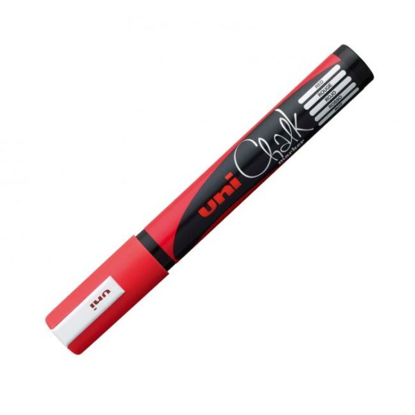 Kriedové popisovače s možnosťou použitia pre priemysel, dekoráciu, informačné tabule a hobby. Na čistých a odmastených neporéznych povrchoch text po zaschnutí odoláva vode a UV, ale je stierateľný vlhkou handričkou. Vhodné na okná, zrkadlá, kovové a plastové povrchy. Hrot guľatý, šírka stopy 1,8 – 2,5 mm. Farba neónovočervená.