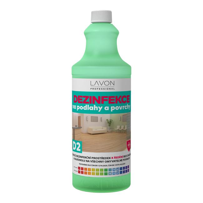 Dezinfekčný prostriedok LAVON na podlahy a povrchy D2 je biocídny čistiaci prípravok s vysokou penivosťou do potravinárstva, priemyslu, domácností a verejných priestorov. Určený na dezinfekciu a čistenie všetkých druhov podláh a nenasiakavých povrchov. Vysoká čistiaca a odmasťovacia účinnosť, vhodný aj na umývanie riadu. Likviduje baktérie a obalené vírusy: OTESTOVANÉ podľa STN EN 1276:2020, STN EN 14476+A2:2020.