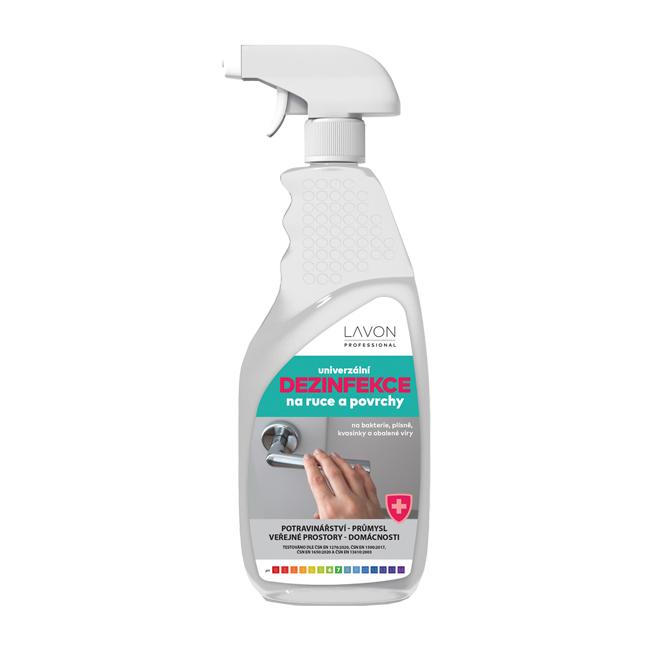 LAVON univerzálny dezinfekčný prostriedok na ruky a povrchy je biocídny výrobok na spotrebiteľské a profesionálne použitie v potravinárstve, priemysle, domácnostiach a verejných priestoroch. Je určený na dezinfekciu rúk, pracovných plôch alebo povrchov zariadení. Ako preventívne opatrenie používajte na miestach, ktoré prichádzajú často do kontaktu s rukami (držadlá, zábradlia, kohútiky atď.). Testované podľa noriem EN 1276:2020, EN 1500:2017, EN 1650:2020 a EN 13610:2003. Obsahuje 65 % alkoholu.