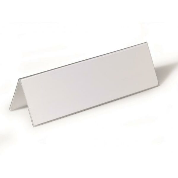 Obojstranne čitateľná stolová menovka z pevného PVC, vhodná na konferencie, recepčné pulty, ceny tovarov a popis produktov. Dodávaná s vymeniteľnou prázdnou kartou. Väčšie balenie 25 ks.