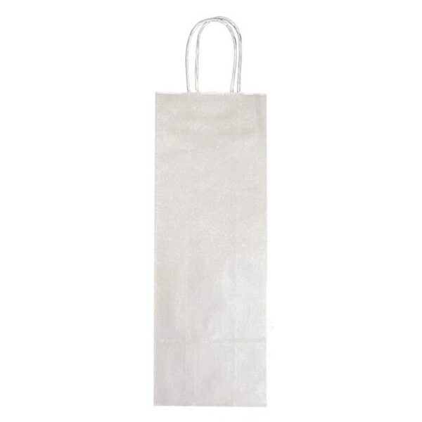 Papierová taška na víno. Farba strieborná. Ušká stáčané. Gramáž papiera 110g. Cena za kus. Rozmery v mm
