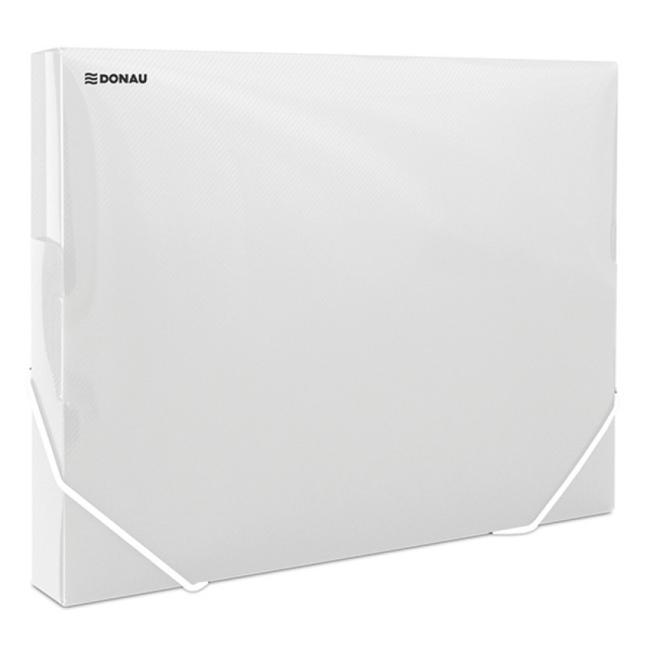 Plastový box s tromi chlopňami vyrobený zo silného polypropylénu 700 µm, uzatvárateľný gumičkou. Kapacita cca 300 listov. Rozmery (v×hך) 327×250×32 mm. Väčšie balenie 20 ks.