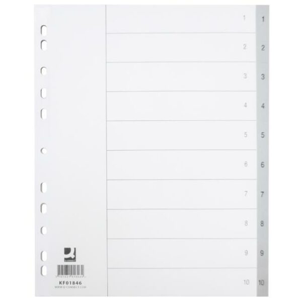 Plastový rozraďovač Q-CONNECT 10-dielny maxi sivý