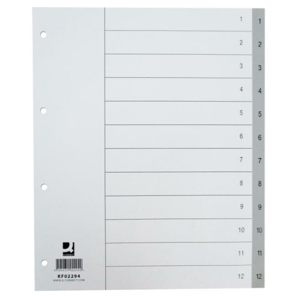Plastový rozraďovač Q-CONNECT 12-dielny maxi sivý