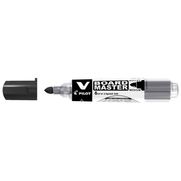 Popisovač na biele tabule s vymeniteľnou náplňou na alkoholovej báze. Priemer hrotu 6 mm, šírka stopy 2,3 mm. Farba čierna.
