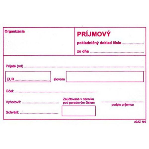 Príjmový pokladničný doklad bez DPH, formát A6, blok 100 listov.