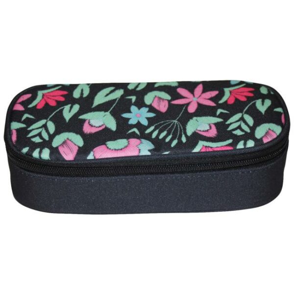 Oválny peračník na zips, 1 vnútorná chlopňa s pútkami na pero, bez náplne, materiál polyester, Š x V x H: 21 x 5,5 cm. Motív Srdce a Kvety.
