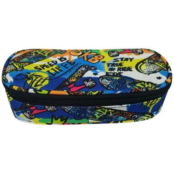 Oválny peračník na zips, 1 vnútorná chlopňa s pútkami na pero, bez náplne, materiál polyester. Rozmery: Š x V x H: 21 x 5,5 x 10,5 cm. Motív Skater.