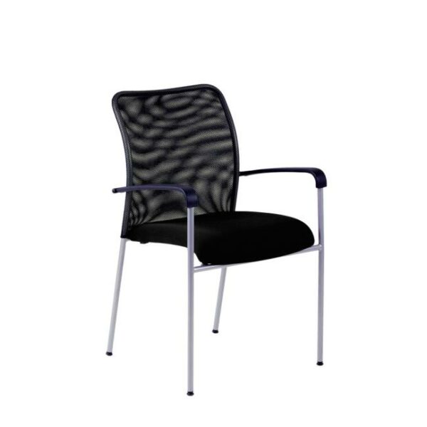 Rokovacia čalúnená stolička so sieťovinovým operadlom.