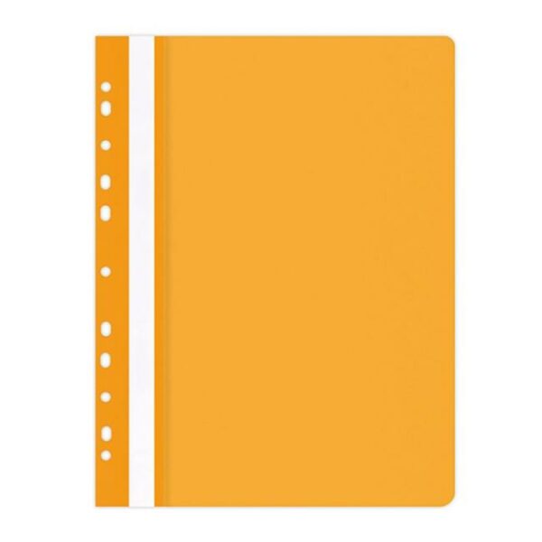 Rýchloviazač PP formátu A4 s priehľadnou prednou stranou a eurodierovaním. Farba matná oranžová.