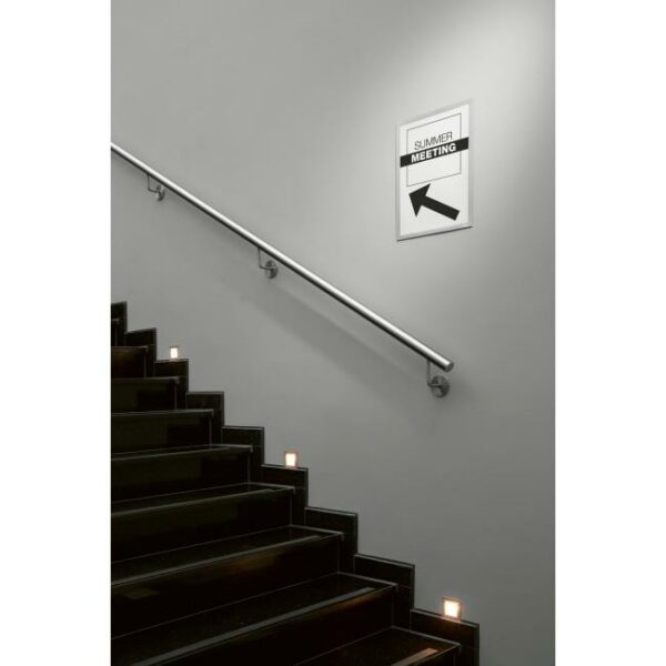 Samolepiaci informačný panel s prednou magnetickou časťou. Ideálny na vystavovanie plagátov, kľúčových informácií, špeciálnych oznamov alebo dôležitých čísel. Informácie sa ľahko vymieňajú a sú čitateľné z oboch strán, ak sa panel umiestni napr. na okno alebo priehľadné dvere. Vhodný na hladké a pevné povrchy. V prípade potreby je ľahko premiestniteľný bez potreby vŕtania. Formát A4, rámik strieborný.