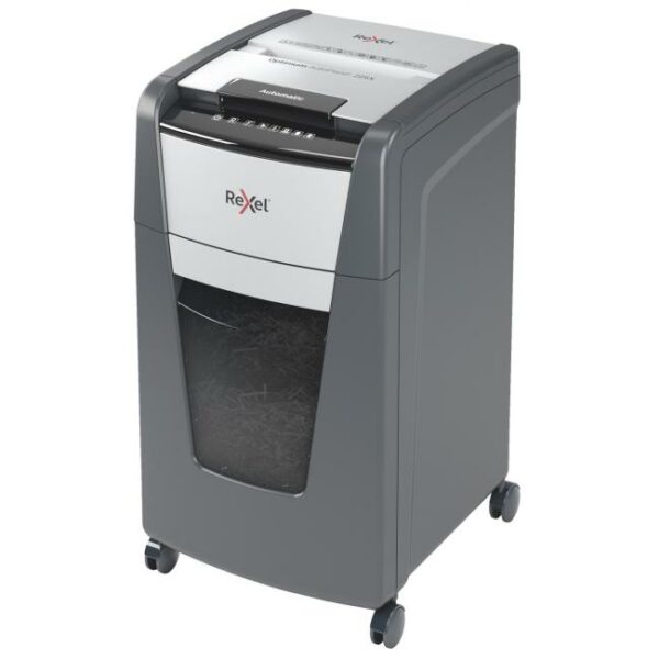 Skartovačka Optimum AutoFeed 225X automaticky skartuje až 225 hárkov papiera A4 (80 g/m2) krížovým rezom P-4 (4 × 26 mm). Tento stroj na skartovanie s automatickým podávaním je sofistikovaný kancelársky drvič s výsuvným košom s objemom 60 l. Nie je potrebné ručne vkladať papier alebo vopred odstraňovať svorky a kancelárske sponky, táto automatická skartovačka papiera urobí všetko za vás.