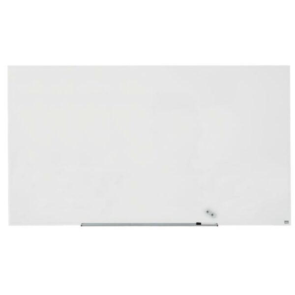 Na širokouhlé sklenené tabule Nobo sa vojdú všetky vaše nápady! Širokouhlý formát a minimalistický rámček maximalizujú využiteľnú plochu na písanie. Systém InvisaMount™, pre jednoduchú inštaláciu na stenu, schová všetky montážne prvky za doskou tabule. Vďaka tomu tabule majú moderný, štýlový a ničím nerušený dizajn. Súčasťou tabule je taktiež odnímateľný hliníkový odkladač na popisovače. Magnetický sklenený povrch zaručuje najlepšiu možnú mazateľnosť a je vhodný na každodenné používanie. Veľkosť uhlopriečky: 85” (215 cm).