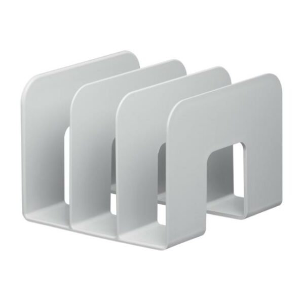 Trojpriehradkový stojan na katalógy pre flexibilné použitie. Vyrobený z recyklovaných plastov v kvalite Blue Angel. Priehradky široké 65 mm. Jednoduché zasúvanie a vyberanie. Vhodný pre časopisy, brožúry, katalógy atď. Rozmery: 215 x 165 x 210 mm (Š x V x H). Farba sivá.