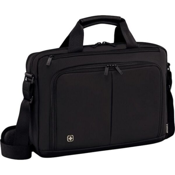 Taška s komfortne nastaviteľným ramenným popruhom, spevneným ergonomickým madlom a systémom na uchytenie pre kolieskovú batožinu s výsuvným držadlom perfektne ochráni notebook pred nárazmi. Vnútorný priestor je účelne členený a obsahuje napríklad oddelenú časť na dokumenty. Organizér udrží všetko potrebné príslušenstvo dokonale usporiadané a ľahko prístupné, vrecko iPad Pocket poslúži na uloženie tabletu alebo čítačky. Materiál polyester, PVC a nylon, farba čierna. Rozmery (š × v × h) 410 × 280 × 120 mm.