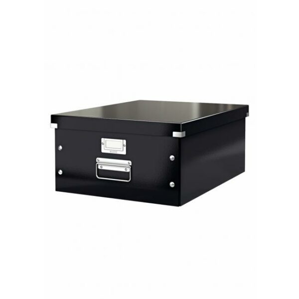 Skladacia archivačná krabica vhodná na ukladanie dokumentov formátu A3, fólií, obalov, obálok, zakladačov, katalógov a pod. Rámik na popisovací štítok, laminovaný povrch pre lepšiu a trvalejšiu ochranu, kovové rohy a robustné kovové úchyty pre ľahký prenos. Moderný design, ktorý vyzerá skvelo doma i v kancelárii. Jednoduché zloženie a vysoká stabilita vďaka pevnej konštrukcii. Rozmery (š × v × h) 369 × 200 × 482 mm. Farba čierna.