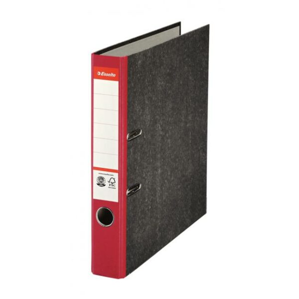 Štruktúrovaný papierový poťah s čiernym mramorovým vzorom, formát A4. Zakladač vybavený rado zámkom a nalepeným chrbtovým štítkom. Páková mechanika v dizajne MATT s prítlačnou lištou. Šírka chrbta 5 cm. Balenie 25 ks.