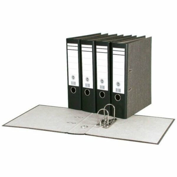 Zakladač so štruktúrovaným papierovým poťahom mramorového vzoru, formát A4. Vybavený rado zámkom, kovovým prítlakom, chrbtovým krúžkom a nalepeným chrbtovým štítkom. Šírka chrbta 7,5 cm. Väčšie balenie: 20 ks. Farba čierna.