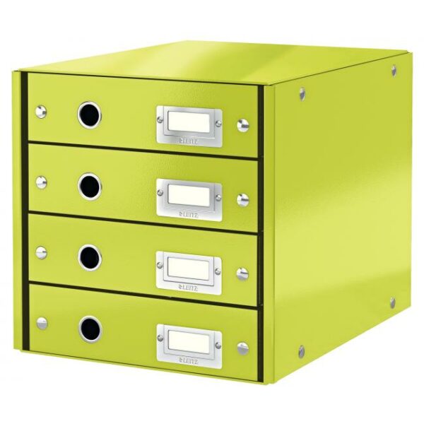 Moderný design, ktorý vyzerá skvelo doma i v kancelárii. Box so 4 zásuvkami pre formát dokumentov A4. Kovový úchyt na vytiahnutie zásuvky, rámik na popisovací štítok, laminovaný povrch. V prípade nepoužívania sa dá rozložiť. Rozmery 286 × 282 × 358 mm. Farba zelená.